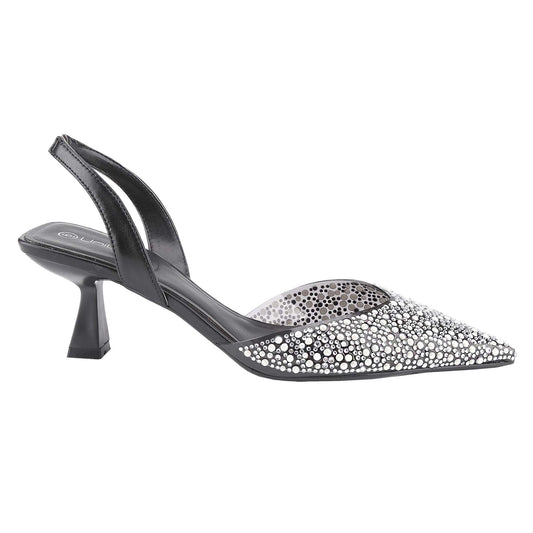 Rhinestone Embellished Pointed Toe Open-Back High Heels