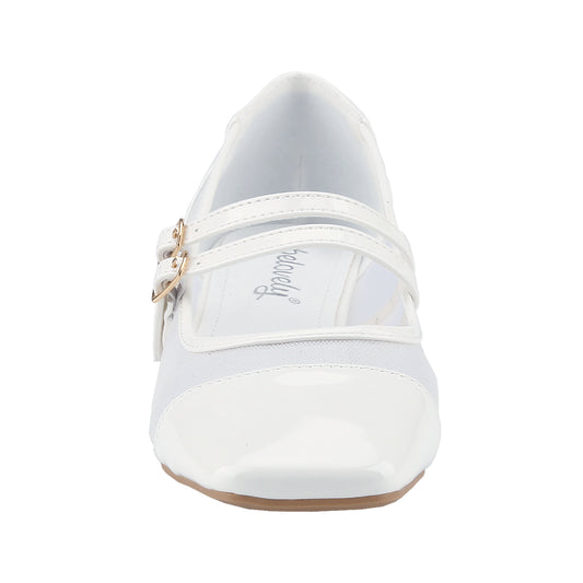Women's block-heeled square-toe heels, Mary Jane shoes with mesh and patent leather panels, mid-heel double buckled sandals