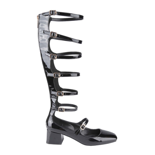 Women's All-Season Mary Jane Shoes: Square-Toe Buckled Cutout Boots